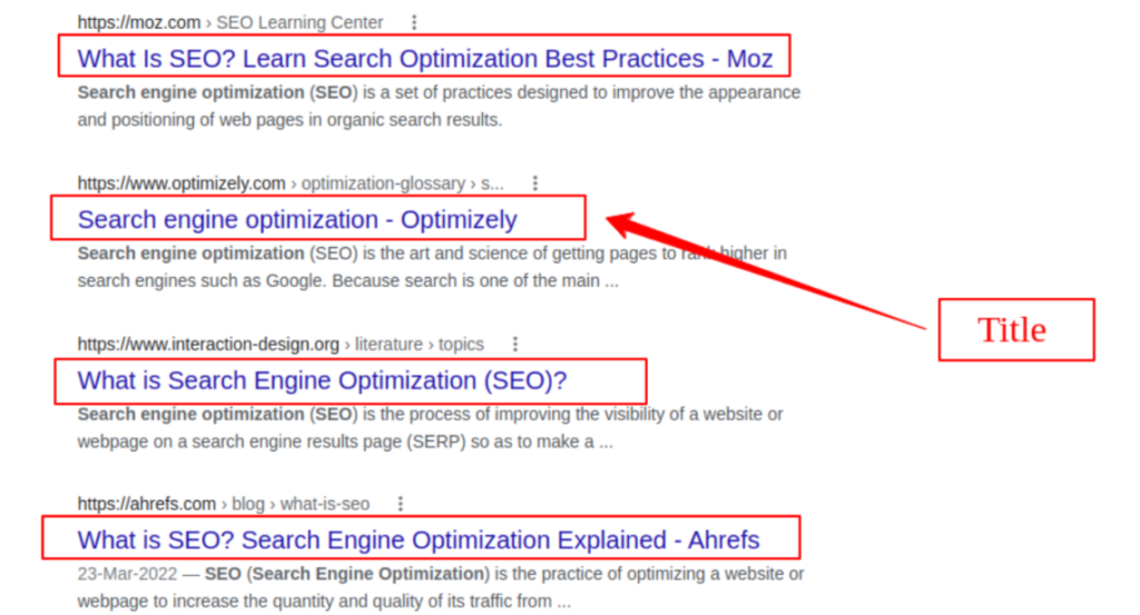 An SEO title tag is the clickable headline that shows up in the results of the search engine. It provides information to the search engines as well as the users about your page. It is one of the most critical on-page SEO components.